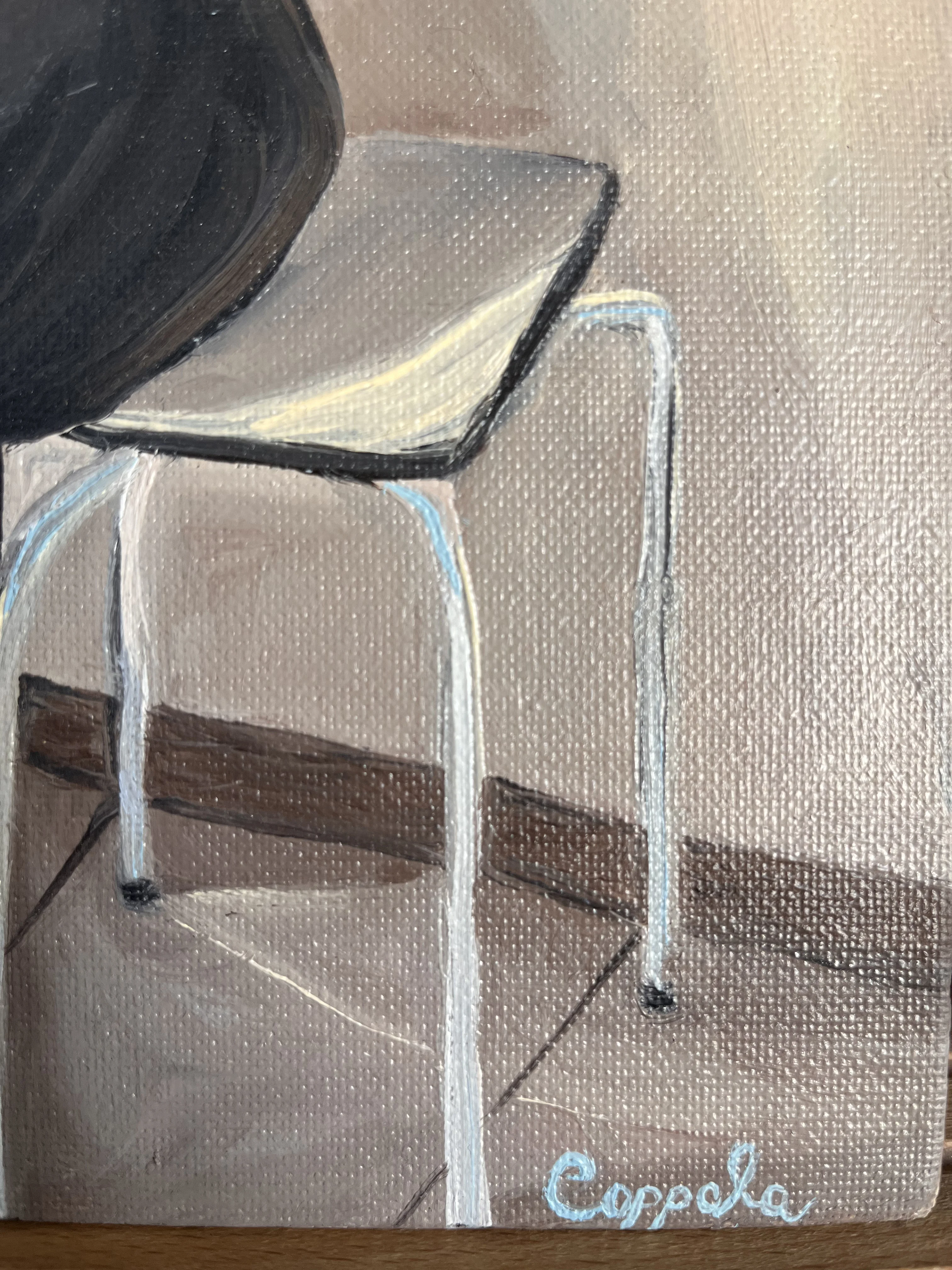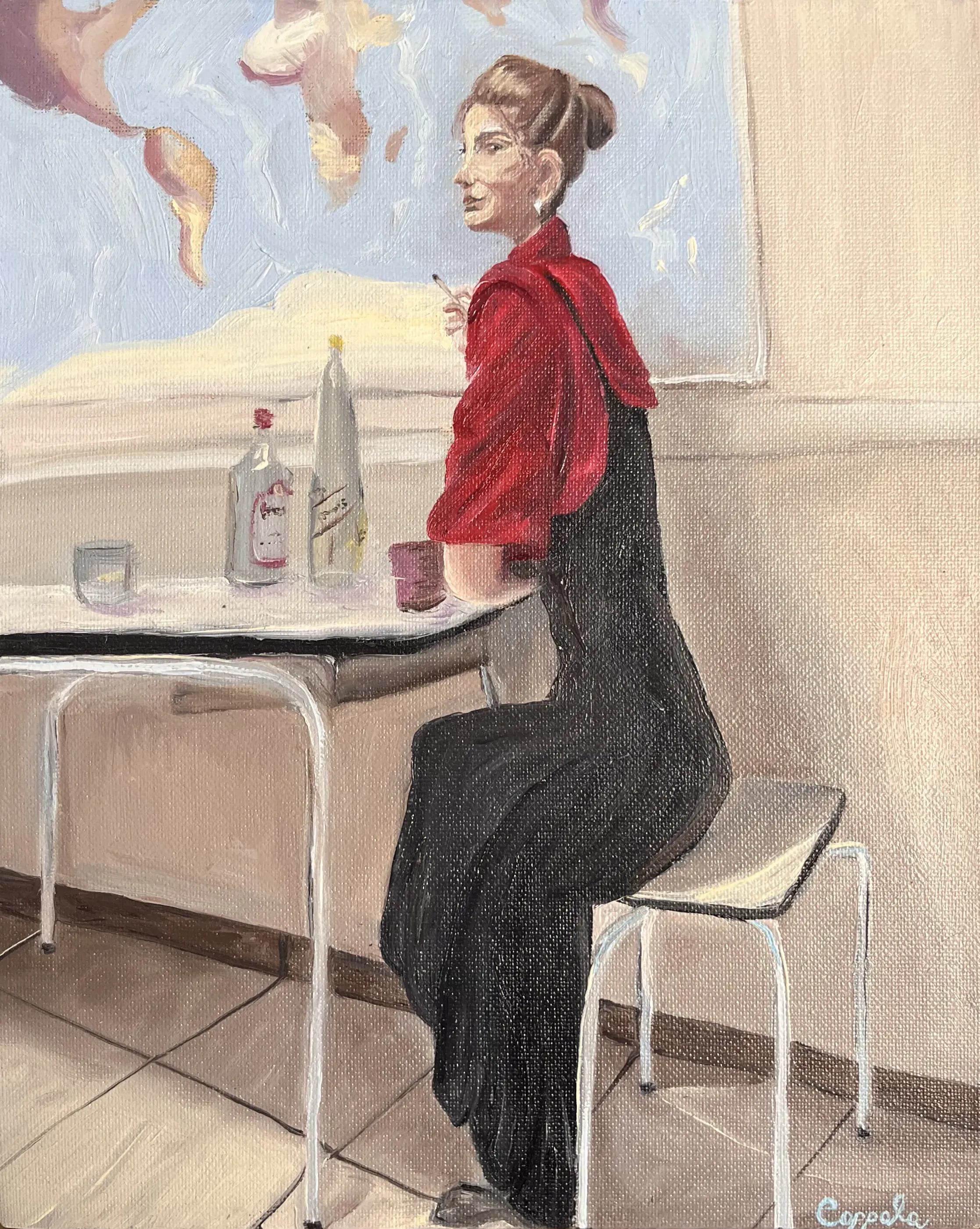 Elle boit un gin tonic dans son studio. Elle fume une clope. La parisienne se tient bien droite.